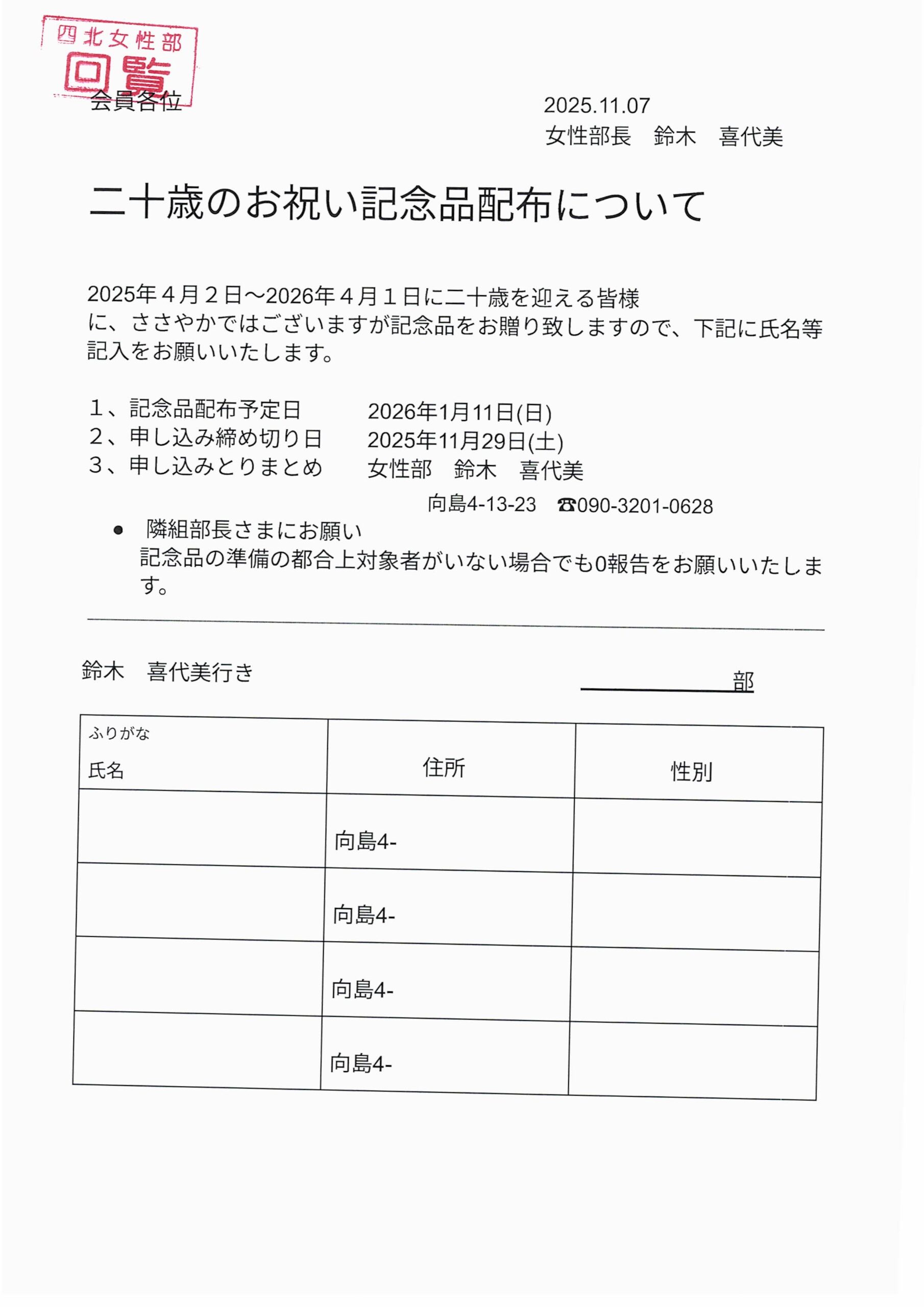 令和7年11月度 回覧板