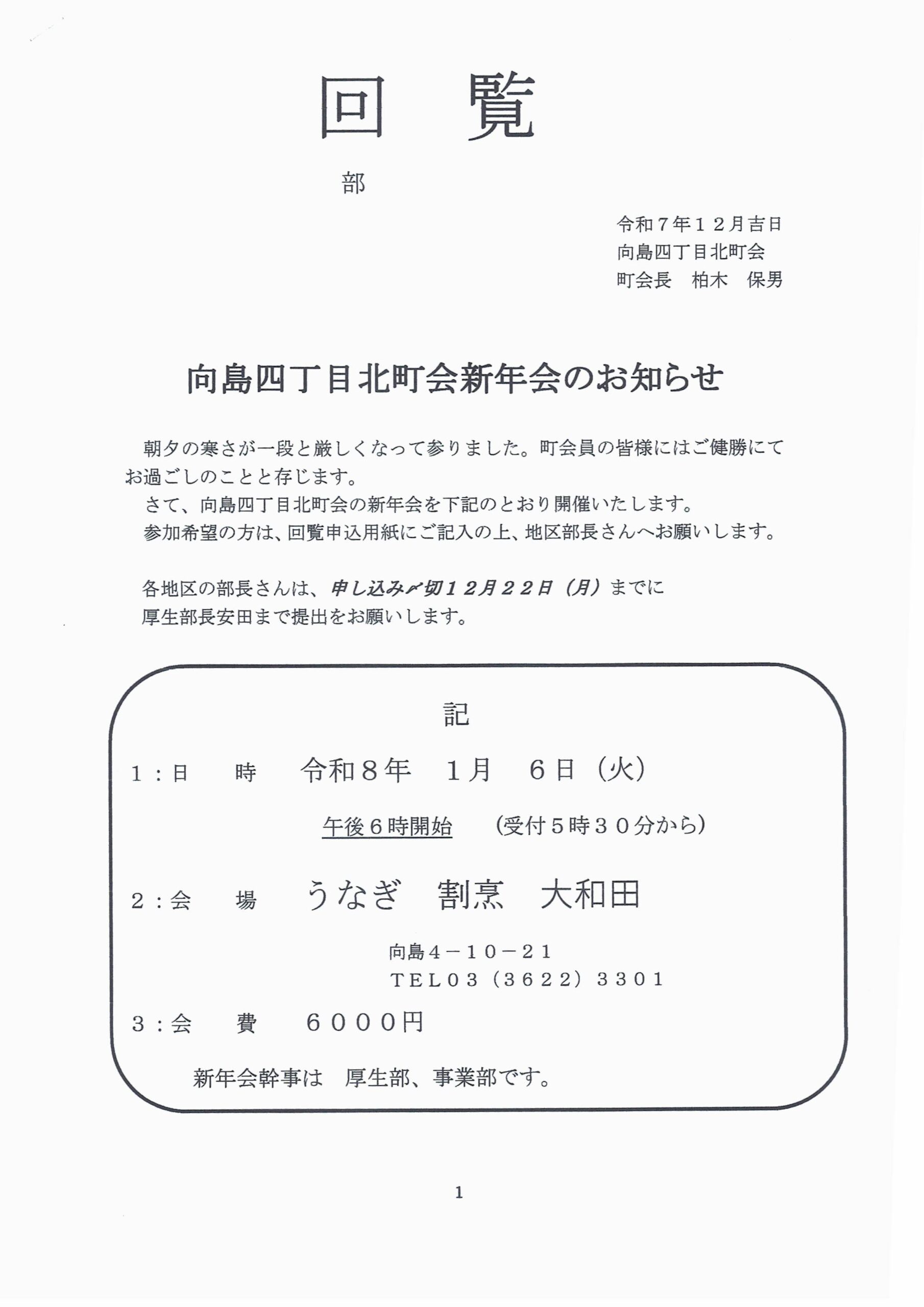 新年会のお知らせ
