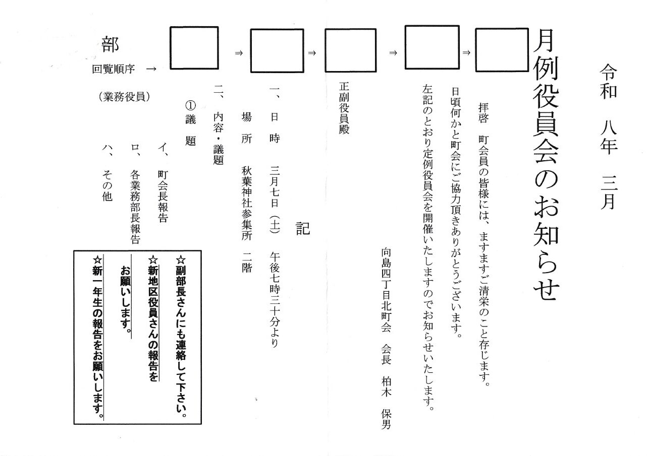 定例役員会のお知らせ